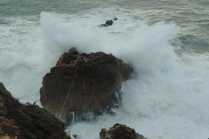 The purpose if this tour is to show the clients the giant waves of Nazaré. The waves form due to an underwater canyon. We pick up clients and take them to the spot, where the fort of Nazaré is. Here you have the best views of these spectacular waves. We visit the fort and gaze at the waves. In the fort there some photographs and surfboards of people who have dared surf these massive waves. The world record boards can be seen too.